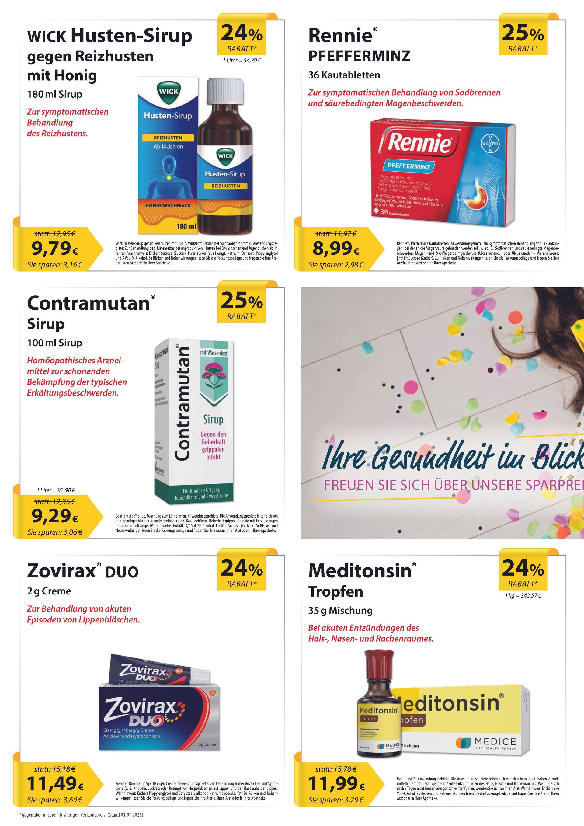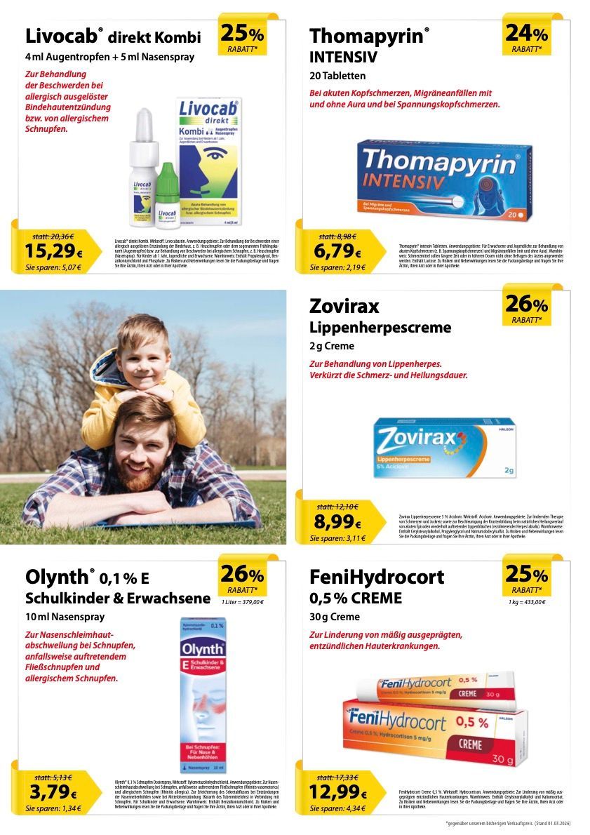 *Ausgenommen sind aus gesetzlichen Gründen rezeptpflichtige Arzneimittel, Rezeptgebühren sowie Bücher. Eine Barauszahlung ist nicht möglich. Diese Aktion ist bis auf Widerruf gültig.