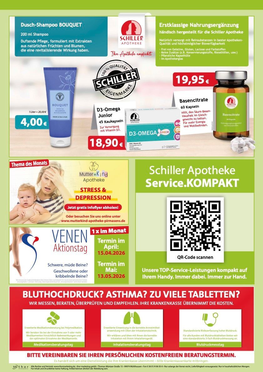 Wir beraten Sie zu allen Themen rund um Ihre Gesundheit. Mit Aktionstagen wie z.B. Venenfunktionscheck, Vitamin-D-Messung oder Hautanalyse, monatlich wechselnden Angeboten, einem ansprechenden Bonussystem, einfachen Bestellmöglichkeiten per Smartphone-App oder Onlineshop verbunden mit einem regionalen Lieferservice sowie einem großen Warenlager mit hoher Verfügbarkeit machen wir Gesundheit für Sie attraktiv, günstig und bequem.